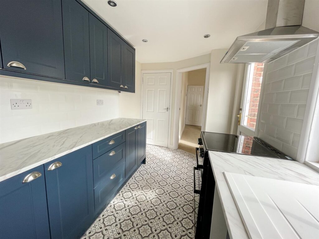 There is a second reception room with a large window to the rear yard and a door opens to the kitchen lying to the rear of the property. The recently fitted kitchen boasts stylish blue units with marble effect worktops, white brick effect tile splash back, white composite kitchen sink with mixer tap and draining board. There is space for a freestanding fridge/freezer, oven and undercounter space and plumbing for a washing machine. The under stair cupboard is accessed from the kitchen providing additional storage space. A door from the kitchen provides access to the rear yard. Beyond the kitchen is the bathroom comprising a bath with shower over, WC and wash hand basin with two frosted windows to the side of the property keeping the room nice and light.