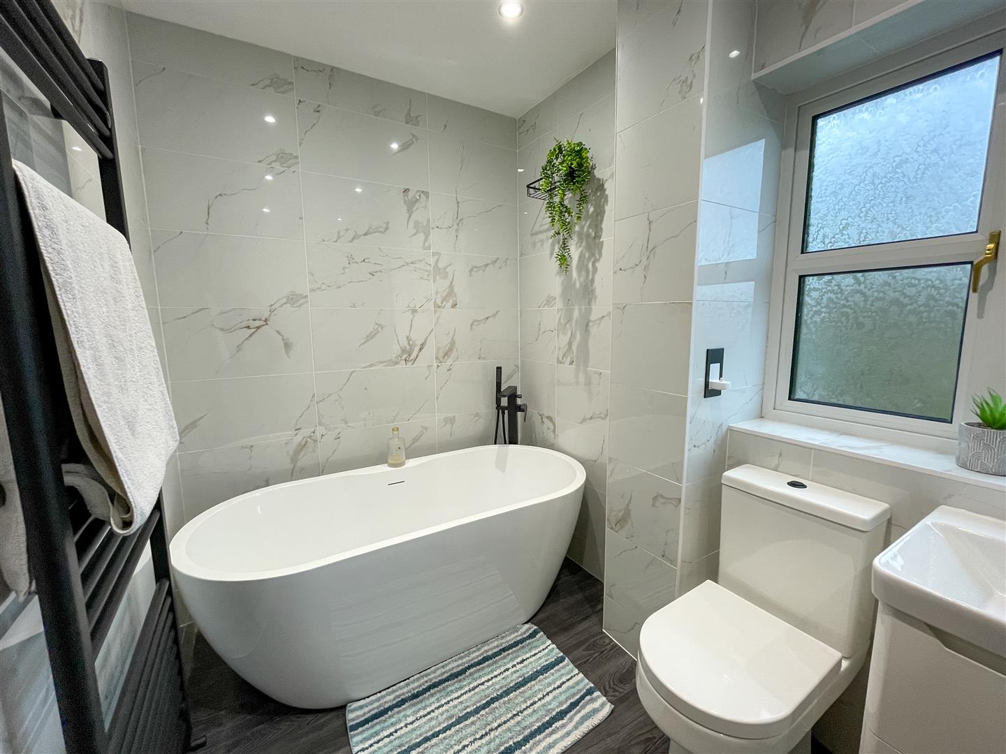 To the first floor, there are four bedrooms, the first bedroom lying to the front of the property has fitted wardrobes and an ensuite shower room with large shower, WC and wash basin. The other three bedrooms all have fitted wardrobes also, and the family bathroom has a freestanding bath, large double shower, WC and wash basin.