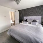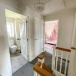 Stairs rise from the entrance hall to the first floor landing. The main bedroom lies to the front of the bedroom having fitted wardrobes with sliding doors and an ensuite shower room. The shower room comprises a double shower, WC and wash basin.