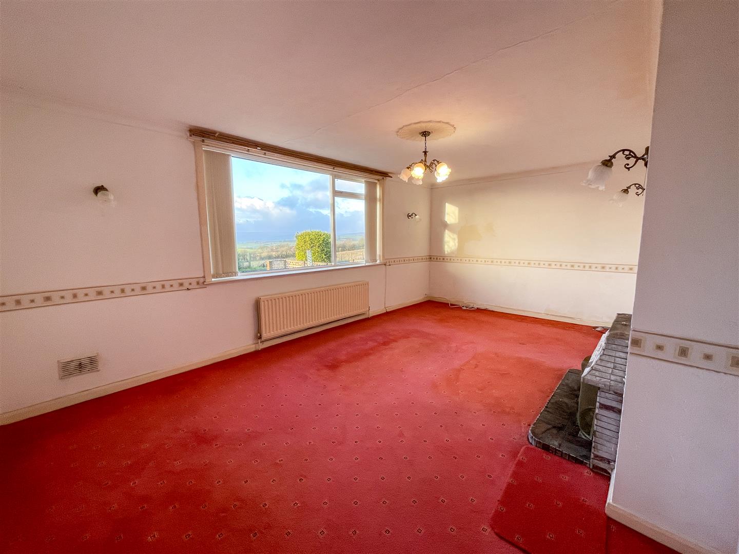 Entering the property there is a large hallway with doors radiating to the living accommodation. The living room lies to the front of the property having a fireplace and views out across the front garden and valley beyond. The kitchen lies to the rear of the property being of good proportions and has range of units and storage cupboards, and an outlook to the garden at the rear from the kitchen sink. There is a freestanding cooker and under counter space for a fridge/freezer. From the kitchen there is a rear porch with access to the adjoining garage, a separate WC and a store room. There is also a door from the rear porch to the garden at the rear.