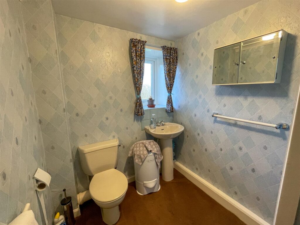 To the first floor, there are two double bedrooms, the larger having an over stairs storage cupboard. Both bedrooms enjoy views across the valley to the front of the property. There is a bathroom comprising a bath, WC and wash basin.