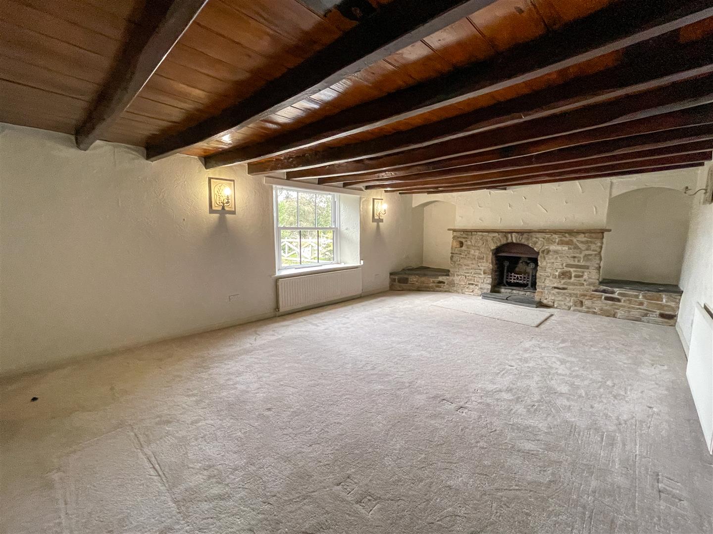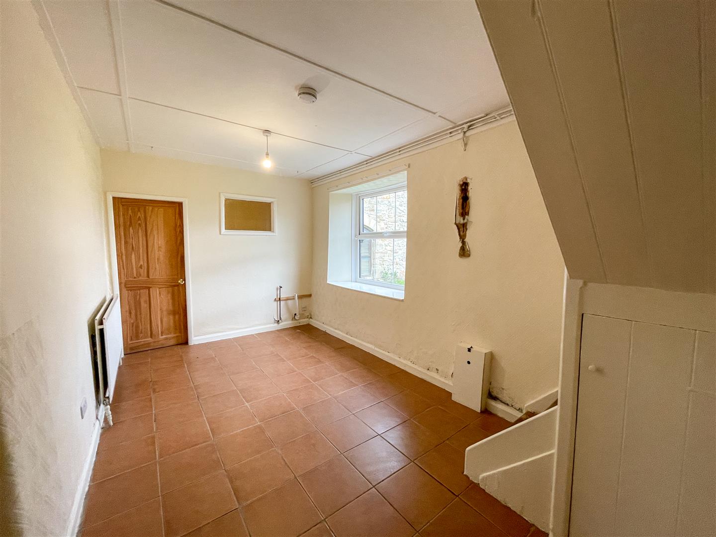 Entering the front door of the property, the two reception rooms lie to either side of the entrance hall with stairs rising to the first floor. The larger of the two reception rooms lies to the left of the entrance hall and has a feature stone fireplace, large window to the front of the property, exposed beams and a large under stair cupboard. The second reception room also has a window to the front of the property along with alcove shelving. From this room a door opens to the kitchen, which has tile floors, a grey kitchen units with integrated electric over, four ring gas hob with extractor fan over and under counter space for a dishwasher. There is ample space for a freestanding fridge/freezer and for a breakfast table and chairs. From the kitchen a door opens to a rear hallway with access to the rear of the property and to the utility room. The utility room is a good sized room with tiled floor plumbing for a washing machine. There is a shower room at the far end of the utility room with shower, WC and wash basin. The room has a tiled floor and shower paneling to the walls. Returning to the utility room there is a door that provides access to the largest living room and also steps up to a door that opens to a second staircase.