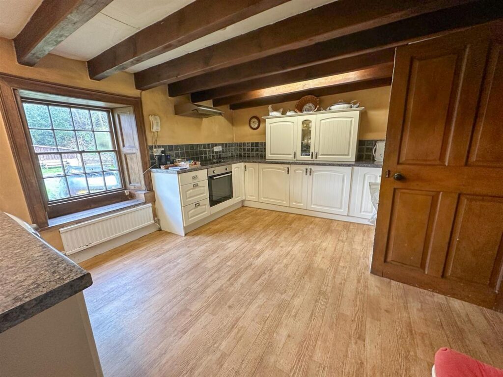 The property is approached via a track from Busty Bank. The farmhouse has original features throughout including exposed beams to the ceilings and traditional shutters to the windows. From the farmyard, steps lead up to the entrance door which opens to a back kitchen with pantry. From the back kitchen a door opens to the main kitchen with a window overlooking the farm yard. The kitchen has a range of white shaker style units with tiled splash back and integrated oven and electric hob with extractor fan over, a fridge and under counter space for a washing machine. From the kitchen a door opens to a living room with a window providing views over the sunken private garden. The room has a large multifuel stove that provides heating and hot water for the property. A door opens from the living room to the inner hallway which has a door returning to the back kitchen and another to the second reception room which has stone flooring and a stone fireplace with brick décor and stone hearth. Views can be enjoyed over the garden from the window. A door opens to an entrance porch with the front door to the property.
