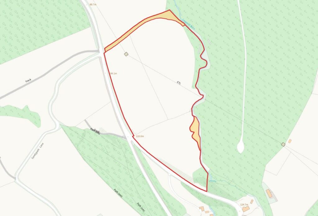 The land comprises three field parcels to the north of Busty Bank road extending to 11.98 acres (4.85 hectares) which gently undulates and is classed as Grade 3 land, two of these field parcels do have a small area of woodland included. On the enclosed plan there are two areas highlighted in orange which are currently unregistered but have been used as part of the field parcels for many years. An overhead electricity cable and pylon runs through this block of grassland.