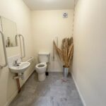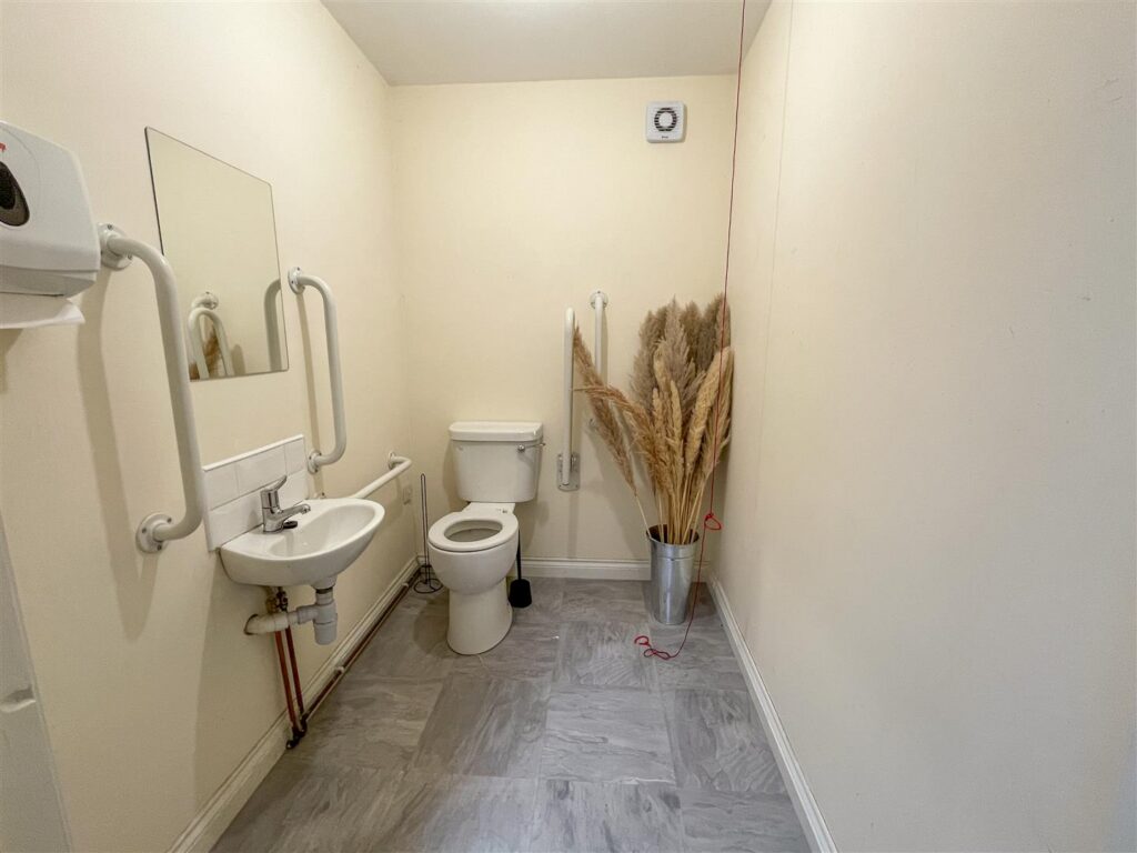 There is a kitchenette with kitchen units, stainless steel sink and draining board and under counter space for a fridge. The kitchenette is currently enclosed within panel walls separating it from the main room, however this could be opened up if desired. There is a disabled access WC with wash basin.