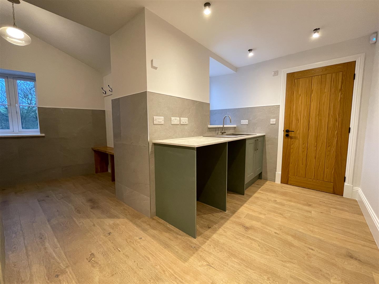 There is a home office which could be utilised as an additional double bedroom with a window to the rear. The room has a useful floor socket for a desk too. The utility room lies to the rear of the property having plumbing for a washing machine and tumble dryer and stainless steel sink sat within sage units. From the utility room there is a boot room with seating and coat hooks, and access to the rear of the property. From the utility room there is a ground floor shower room with shower, WC, wash basin set within a vanity unit, and heated towel rail.