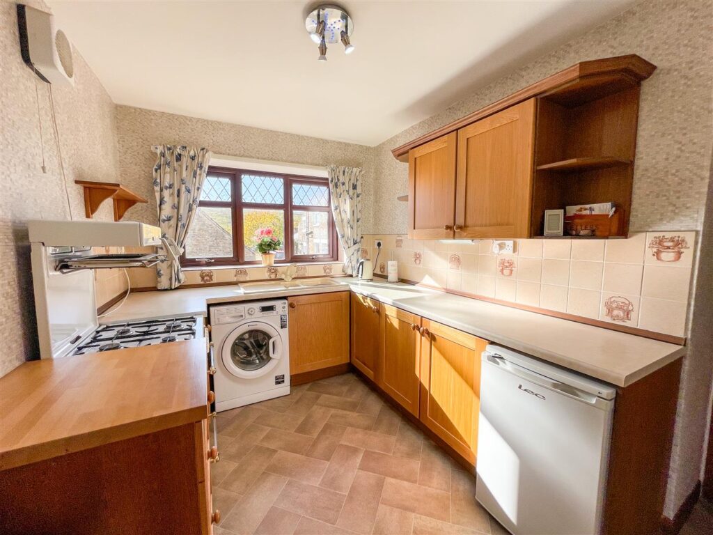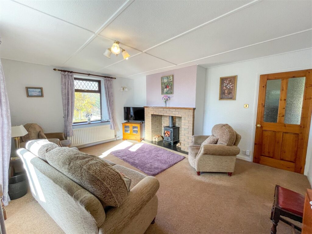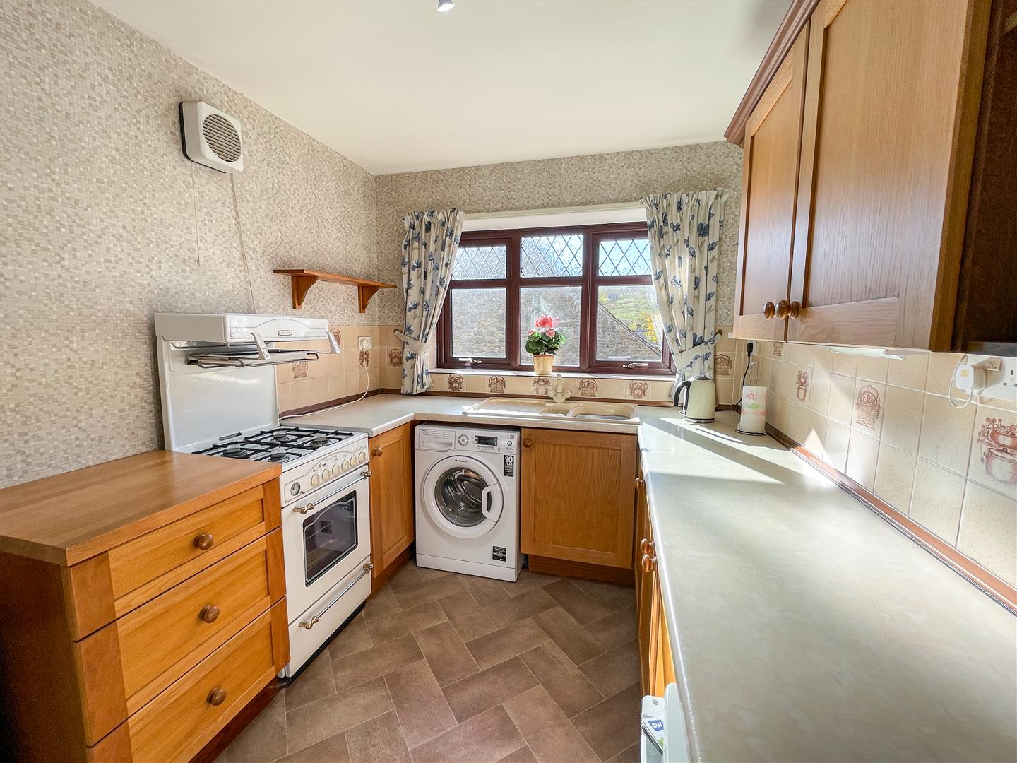 There is a large entrance porch with doors opening to the kitchen and hallway. The kitchen has a range of units with space for kitchen appliances. From the kitchen a door opens to the living room which has a stone fireplace and dual aspect to the village and countryside beyond. From the living a door opens to the hallway with access to two double bedrooms, one having fitted sliding door wardrobes. The third bedroom has a cupboard and houses the oil boiler. The family bathroom comprises a bath, separate electric shower, WC and wash basin.
